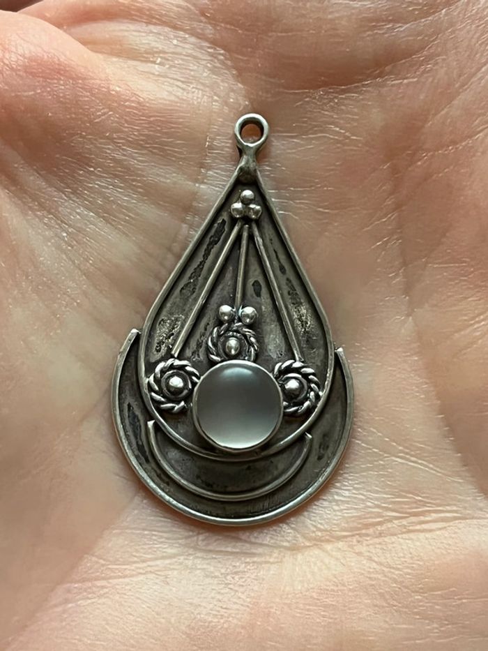 Joli pendentif «goutte » en argent massif avec pierre blanche TBE - photo numéro 5