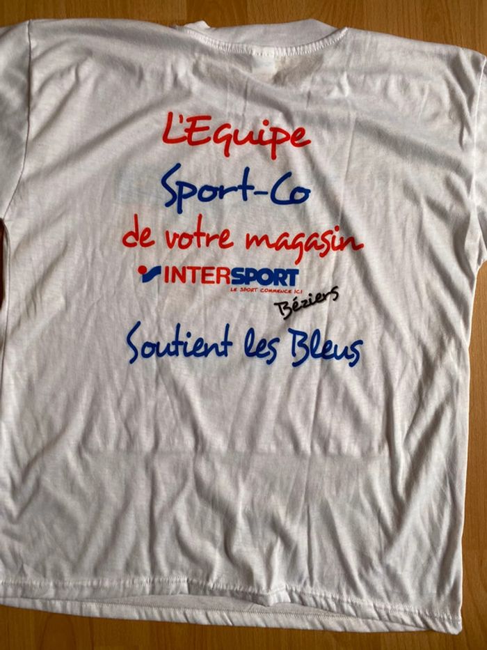 Joli T-shirt blanc à manches courtes INTERSPORT, pour homme T. L, en polyester, neuf. #merine103 #merine103vetementhomme #merine103vetementhommel