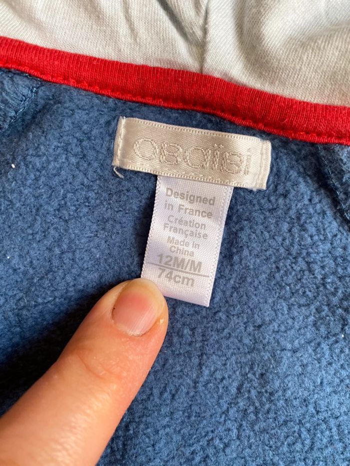Beau gilet bleu à capuche Obaïbi T. 12 mois/74 cm garçon TBE - photo numéro 6