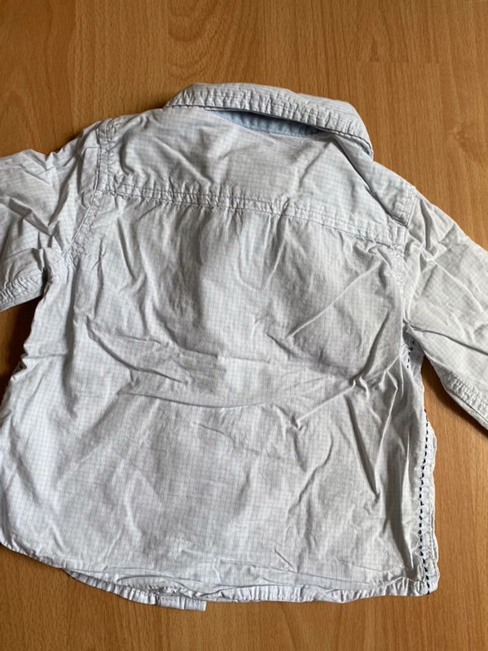 Jolie chemise blanche et bleue à carreaux à manches de marque OBAÏBI pour bébé garçon T.12 mois/74 cm, en coton, en très bon état. Fermeture par boutons devant. #merine103 #merine103vetementbebe #merine103vetementgarcon #merine103vetementgarcon12mois #obaibi