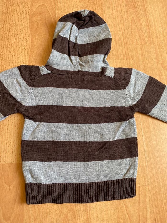 Joli pull à capuche ML à rayures marrons et grises T. 6 mois/68 cm garçon TBE - photo numéro 4