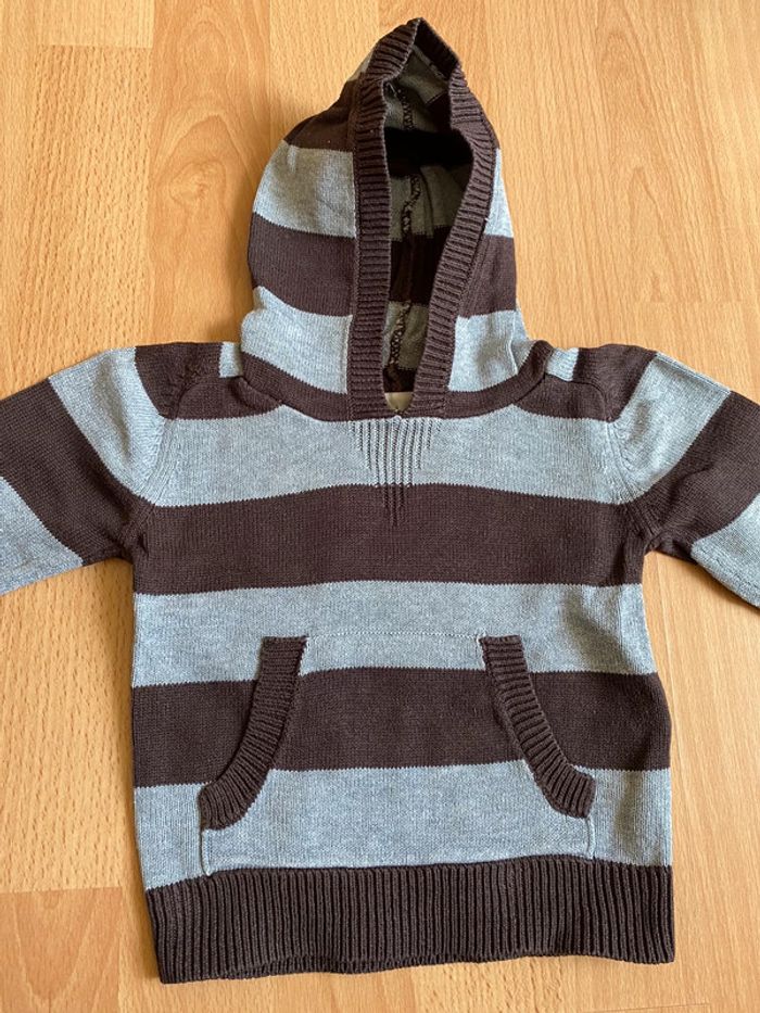 Joli pull à capuche ML à rayures marrons et grises T. 6 mois/68 cm garçon TBE - photo numéro 1