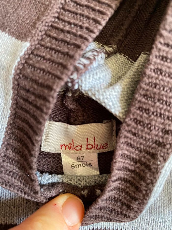 Joli pull à manches longues et à rayures marrons et grises pour bébé garçon T. 6 mois/68 cm, en coton, en très bon état. Deux poches. #merine103 #merine103vetementbebe #merine103vetementgarcon #merine103vetementgarcon6mois