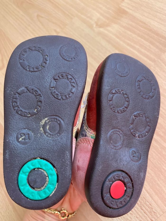 Belle paire de chaussures/bottines en cuir Kickers rose avec hologramme T. 21 fille - photo numéro 9