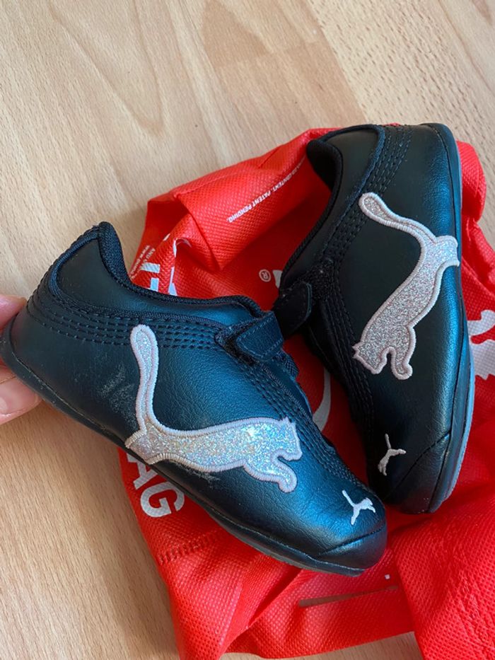 Belle paire de baskets PUMA noir et rose pailleté pour fille pointure 22, en très bon état. Lacets élastiqués et fermeture par scratch. Vendues dans leur sac d’origine. #merine103 #merine103chaussuresenfant #merine103chaussuresfille #merine103chaussuresfille22 #puma
