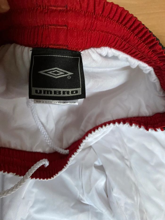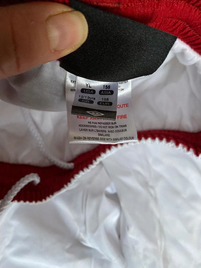 Beau jogging blanc, noir et rouge de marque UMBRO pour garçon ou fille T. 12-13 ans/158 cm, en polyester et coton, neuf. Taille entièrement elastiquée avec cordons à nouer, 2 poches, bas des jambes zippé. #merine103 #merine103vetementenfant #merine103vetementgarcon #merine103vetementgarcon12ans #merine103vetementgarcon13ans #umbro