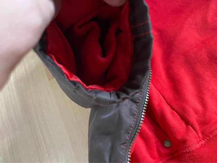 Beau blouson chaud 3 en 1, à capuche, marron et rouge, de marque ORCHESTRA pour garçon T. 3 ans/98 cm, en coton et polyester, en très bon état. Fermeture par boutons + zip, 4 poches, capuche amovible avec scratch à fermer sur le cou. Ce blouson est 3 en 1 car on peut l’utiliser soit comme manteau bien chaud avec le gilet intégré, soit dans le gilet comme veste; soit mettre seulement le gilet. #merine103 #merine103vetementbebe #merine103vetementgarcon #merine103vetementgarcon3ans #orchestra