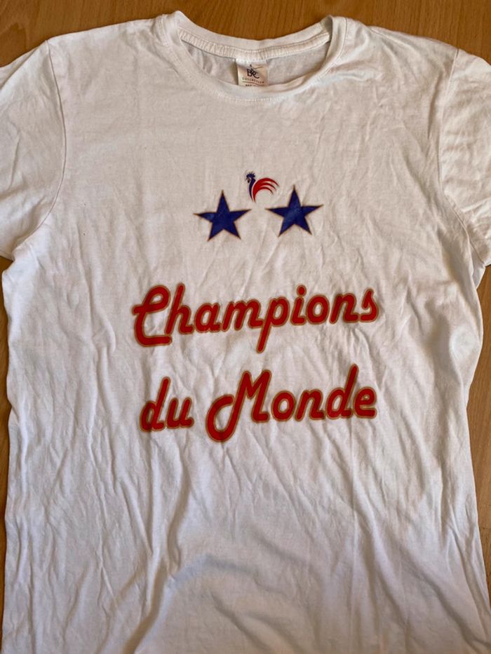 Beau T-shirt blanc MC #Champions du Monde » T. S TBE - photo numéro 1