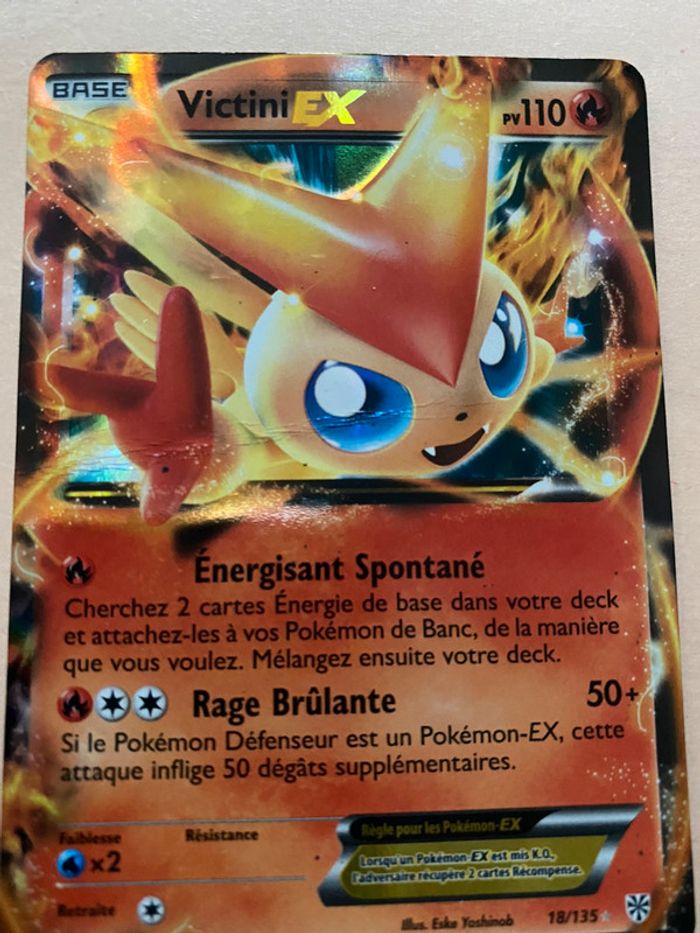Carte POKÉMON rare VICTINI EX 110PV holo 18/135, Noir et Blanc Tempête Plasma, version française, en bon état (une pliure). #merine103 #merine103pokemon