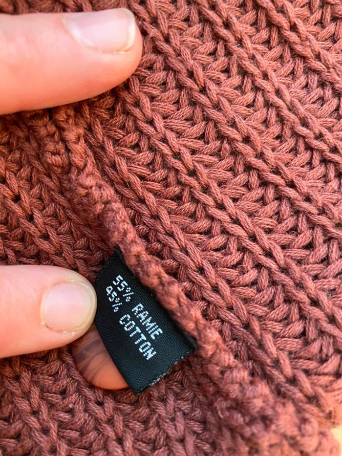 Beau gilet mi-long marron, à manches longues, pour femme T. 46 (l’étiquette indique une taille M mais il correspond plus à une taille 46), en coton et ramie, en très bon état. Fermeture par un bouton sur le col, deux poches. #merine103 #merine103vetementfemme #merine103vetementfemme46