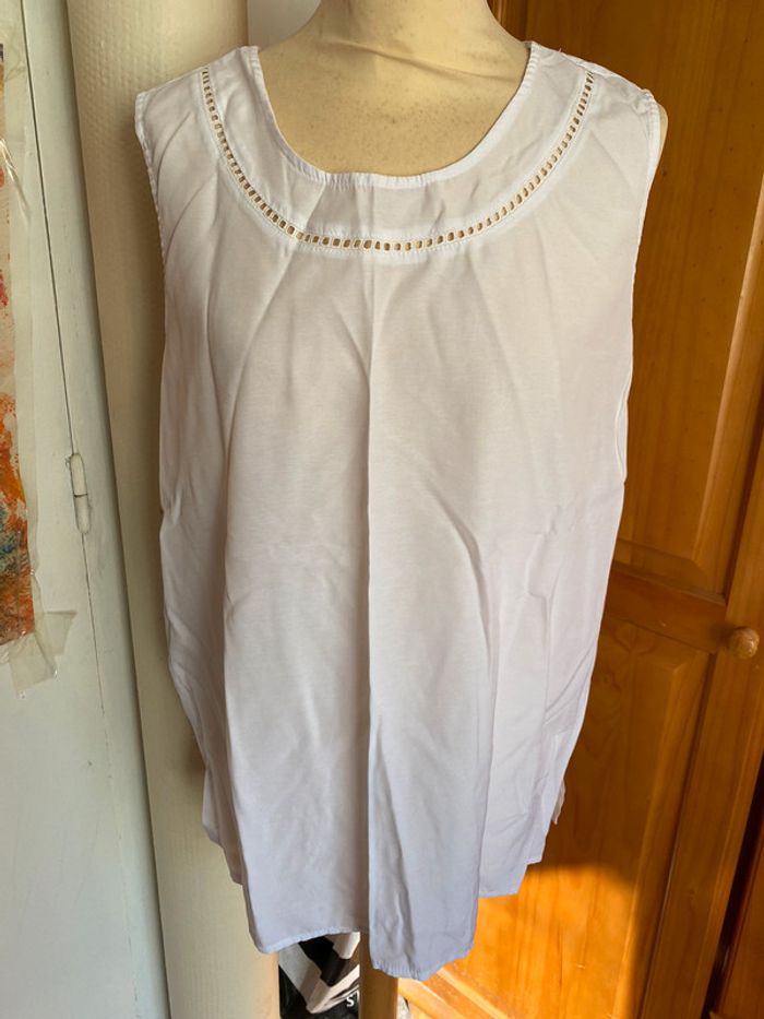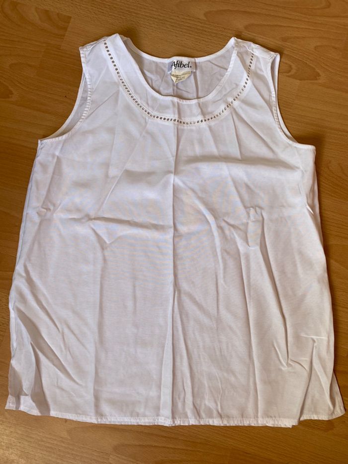 Joli caraco ou débardeur blanc de marque AFIBEL pour femme T. 44, en coton et polyester, en très bon état. A repasser. #merine103 #merine103vetementfemme #merine103vetementfemme44 #afibel