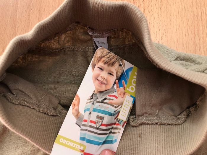 Beau pantalon léger marron kaki, idéal pour la saison été, de marque ORCHESTRA T. 2 ans/92 cm, en lin et coton, neuf avec étiquette. Orix étiquette: 19,95 euros. Taille entièrement elastiquée qui ne serre pas trop le ventre de bébé, avec cordons à nouer devant, 2 poches. Idéal pour l’été. #merine103 #merine103vetementbebe #merine103vetementgarcon