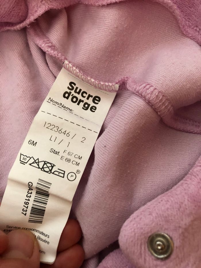 Beau pyjama en velours rose Sucre d’orge T. 6 mois/67 cm, pour bébé fille, en très bon état. Fermeture par boutons devant et à l’entrejambe pour faciliter le change. #merine103 #merine103vetementbebe #merine103vetementfille