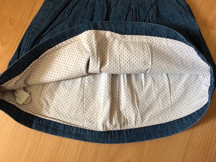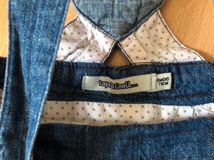 Jolie robe salopette en jean bleu T. 9 mois/71 cm TBE - photo numéro 4