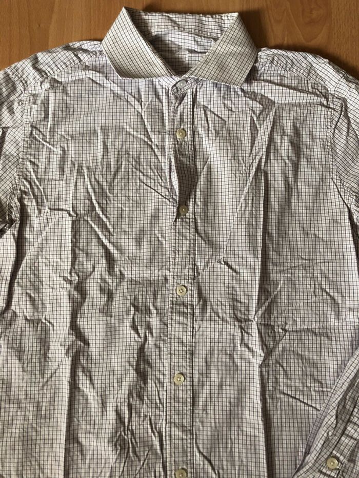 Belle chemise à manches longues bleue et blanche à carreaux, en coton, en bon état. Fermeture par boutons. Carrure: 45 cm, poitrine: 54 cm, longueur: 65 cm, longueur manches: 68 cm, cou: 41 cm, largeur manche: 18 cm. #merine103 #merine103vetementhomme #merine103vetementhomme40