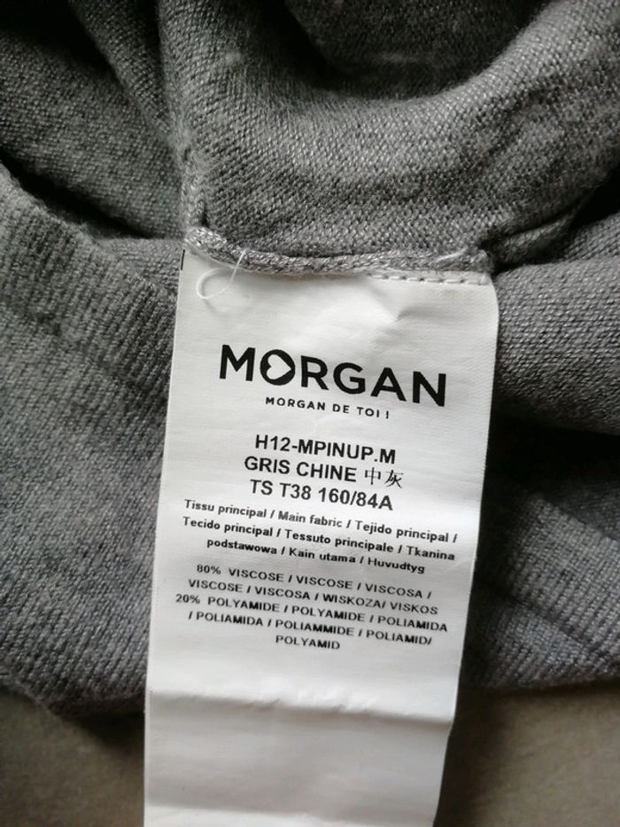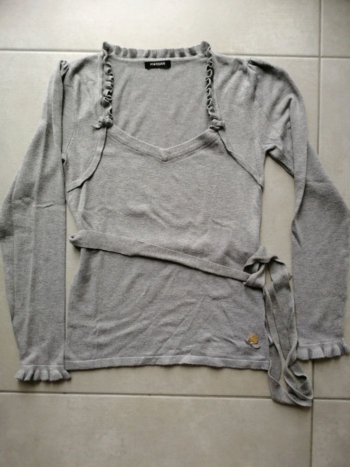 Parfait état car peu porté. Il a une ceinture assorti qui peut s enlever. La forme est originale ainsi que les manches