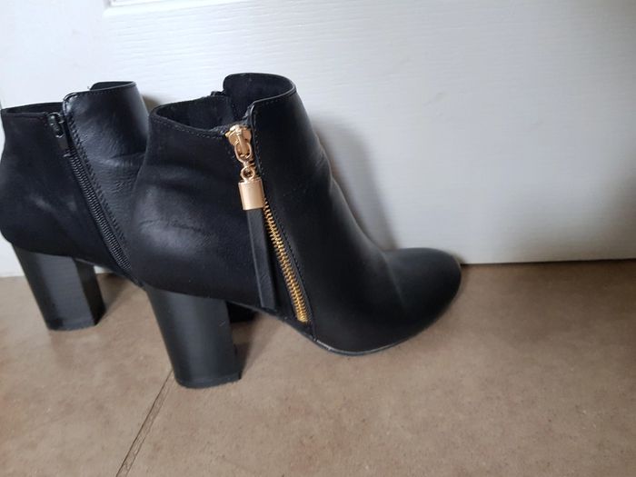 Bottines noires bi matière + fermeture dorée Talon 9 cm
