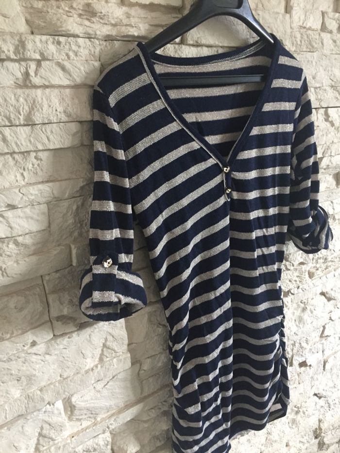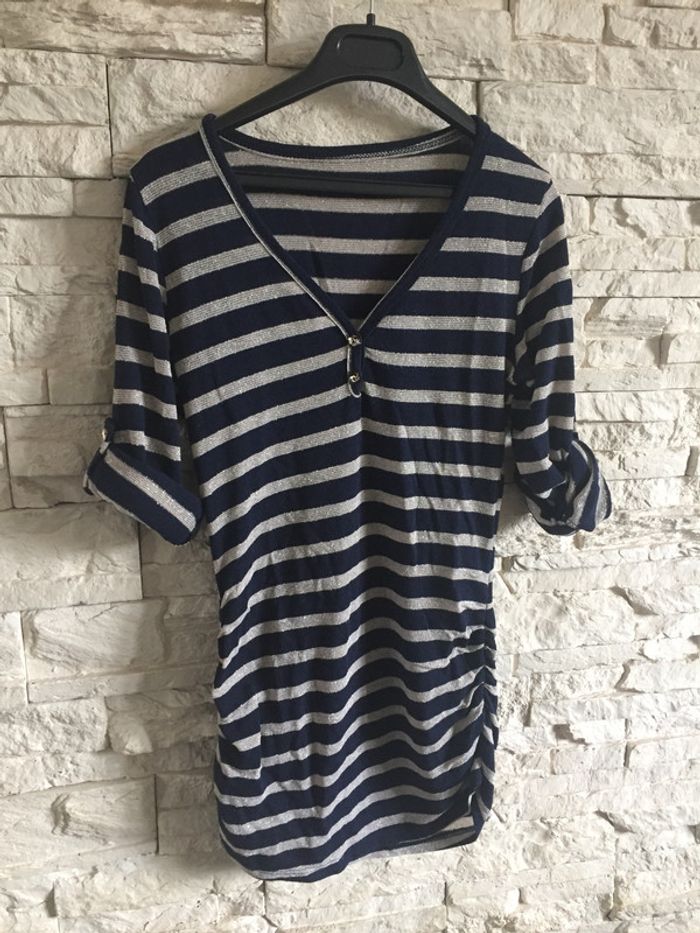 Pull rayé bleu et doré manche 3/4 ou manche longue