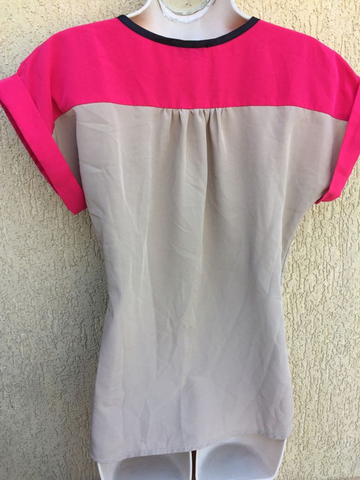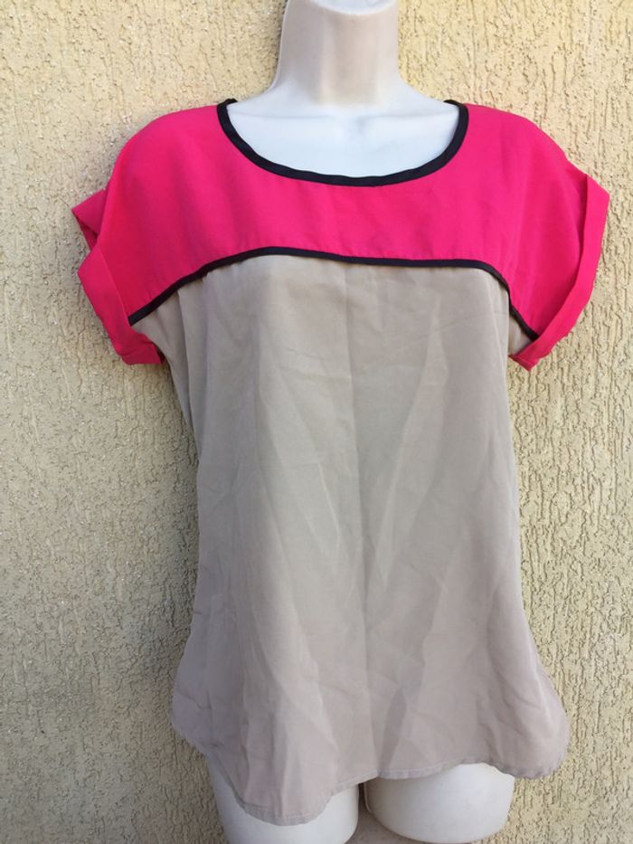 Tee shirt rose et beige, large taille 1