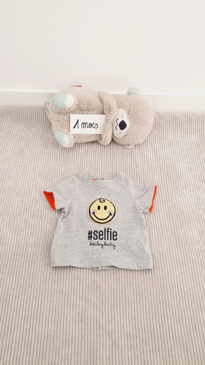 Tee shirt à manches courtes bébé garçon gris smiley taille 1 mois