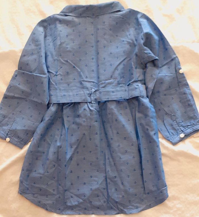 Jamais portée. 100 % coton. Les manches se retourne jusqu'aux coudes avec une attache bouton. Elle mesure 49 cm. Je vend d'autres vêtements de 3 ans et de taille prématuré jusqu'à 6 ans, chaussures de 0 à 27, articles de puériculture, équipement bébé, jouets, poupées... j'accepte aussi le règlement par chèque si vous préférez ne pas payer en ligne