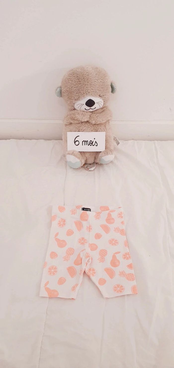 Bonjour, Je vends un pantacourt pour bébé fille Thème fruits ananas poire etc. Taille 6 mois Parfait état