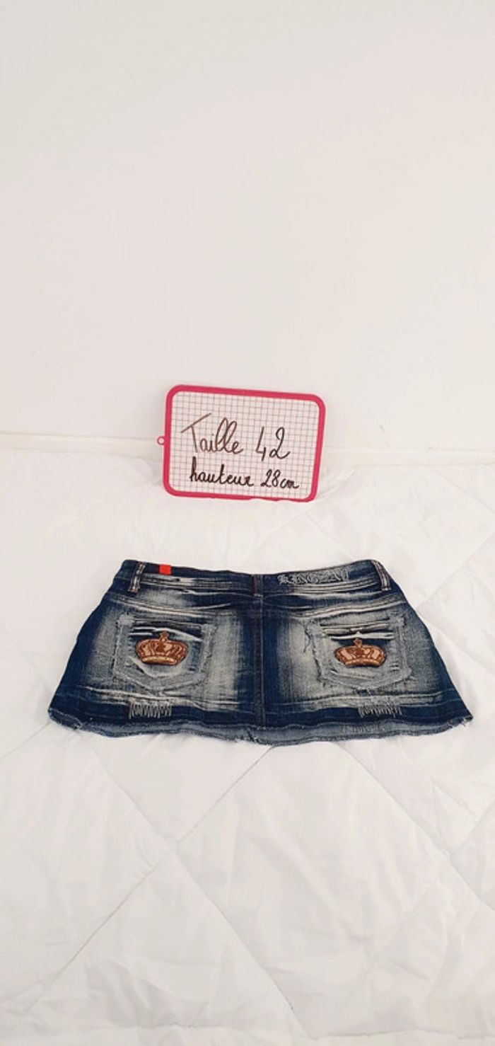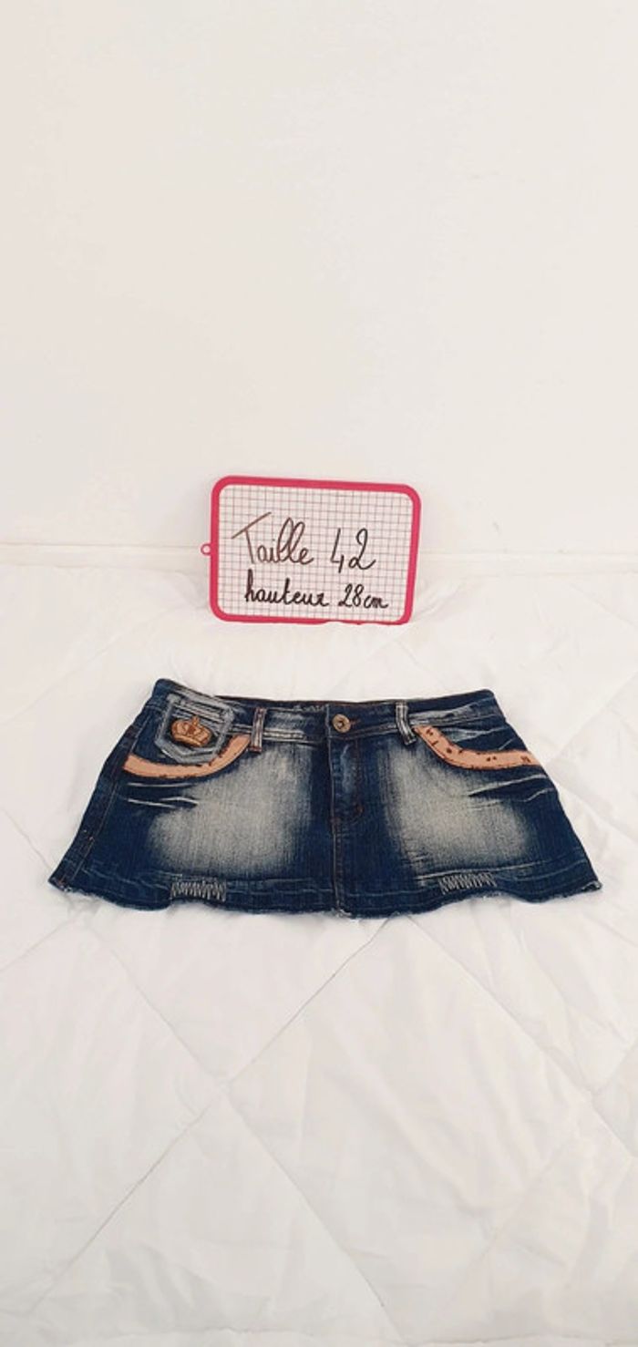 Bonjour, Je vends une mini jupe en jeans pour femme Taille 42 28 cm de hauteur Neuve