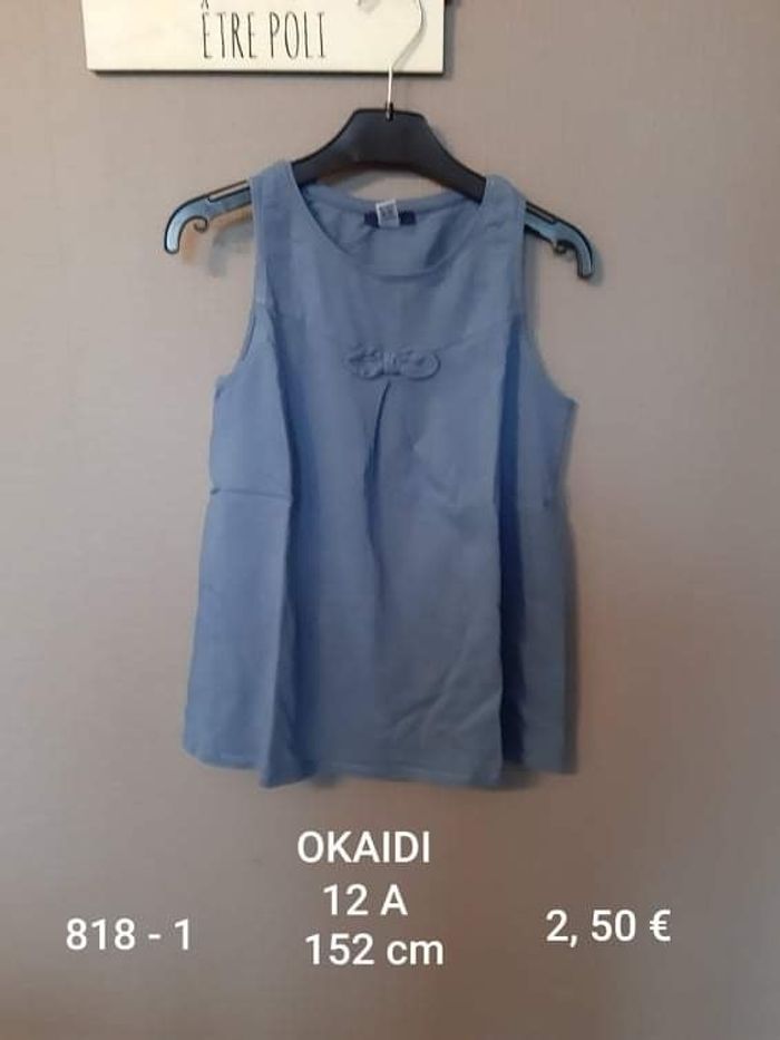 T shirt sans manche bleu avec un nœud de chez OKAIDI Très bon état Taille 12 ans 152 cm Prix 2, 50 €,.