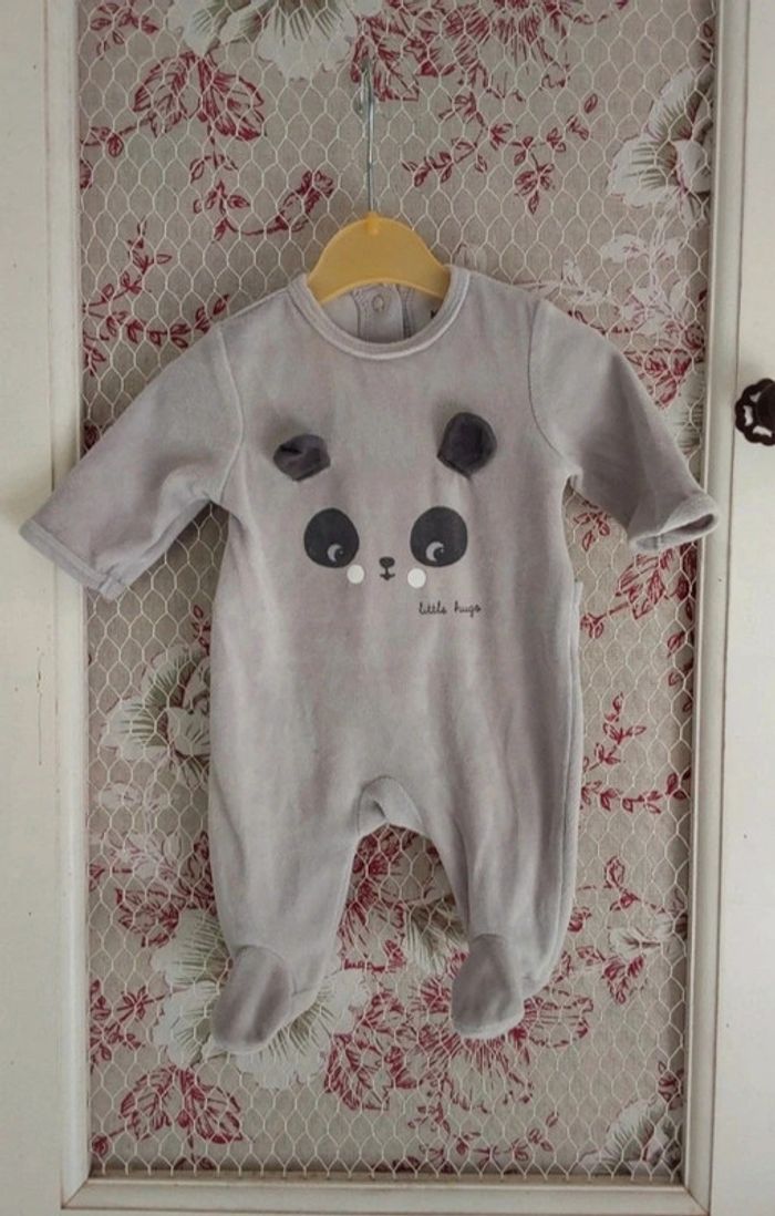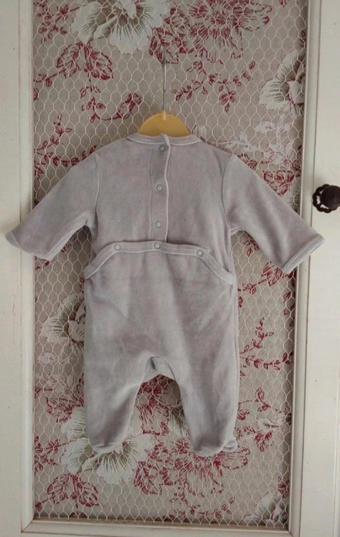 Pyjama velour gris clair Kiabi 1 mois 54cm - photo numéro 1