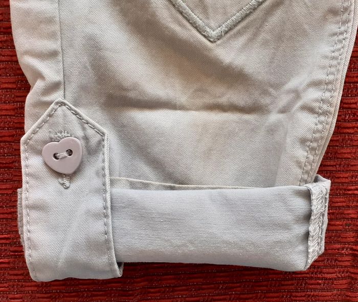 porté, il a une tache sur la jambe et une très légère derrière, vu à l'image. (elles sont détachable) Il a un élastique intérieur pour régler à la taille. Il peut se porter à partir de 24 mois en retroussant les ourlets comme un pantacourt (image 2) hauteur 43.5 cm. taille sans l'ourlet 53.5 cm Je vend d'autres vêtements de 3 ans et de taille prématuré jusqu'à 6 ans, chaussures de 0 à 27, articles de puériculture, équipement bébé, jouets, poupées... j'accepte aussi le règlement par chèque si vous préférez ne pas payer en ligne