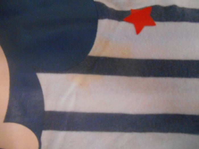 Il n'a été porté que 2 fois, cependant, il y a une tache, vu à l'image. Elle est tout à fait détachable. Je vend d'autres vêtements de 6 mois et de taille prématuré jusqu'à 4 ans, chaussures de 0 à 25, articles de puériculture, équipement bébé, jouets, poupées...   j'accepte aussi le règlement par chèque si vous préférez ne pas payer en ligne