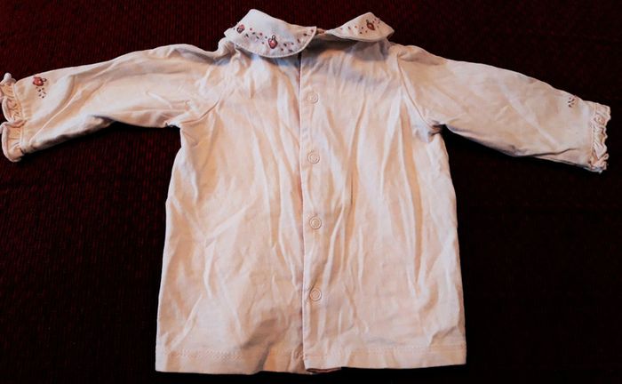 porté 1 fois, juste froissé la couleur est rose pastel très clair, fermeture dans le dos par pressions Je vend d'autres vêtements de 6 mois et de taille prématuré jusqu'à 4 ans, chaussures de 0 à 25, articles de puériculture, équipement bébé, jouets, poupées...   j'accepte aussi le règlement par chèque si vous préférez ne pas payer en ligne