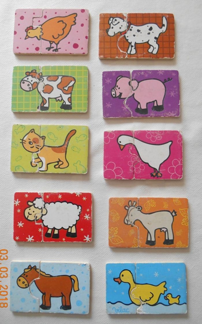 Puzzle animaux double face avec pieces auto-correctives 1 face 1 animal à assembler par 2 pieces, l'autre face pour apprendre les nombres et les chiffres. (il manque le 9 et le 11.) Je vend d'autres puzzles, jouets, poupées, vêtements de taille prématuré jusqu'à 4 ans, chaussures de 0 à 25,   articles de puériculture, équipement bébé... j'accepte aussi le règlement par chèque si vous préférez ne pas payer en ligne