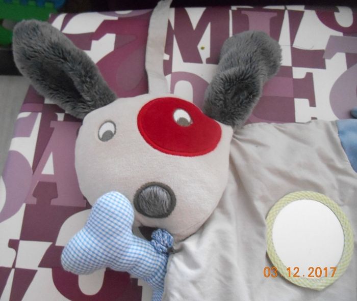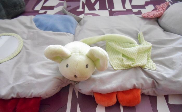 La petite souris fait du bruit quand on appuie dessus, comme l'os lorsqu'il est secoué et il y a un miroir. Je vend d autres jouets d éveil/bébé/enfant, poupées, articles de puéricultures, équipement bébé, vêtements de préma jusqu'à 4 ans, chaussures de 0 à 25 j'accepte aussi le règlement par chèque si vous préférez ne pas payer en ligne