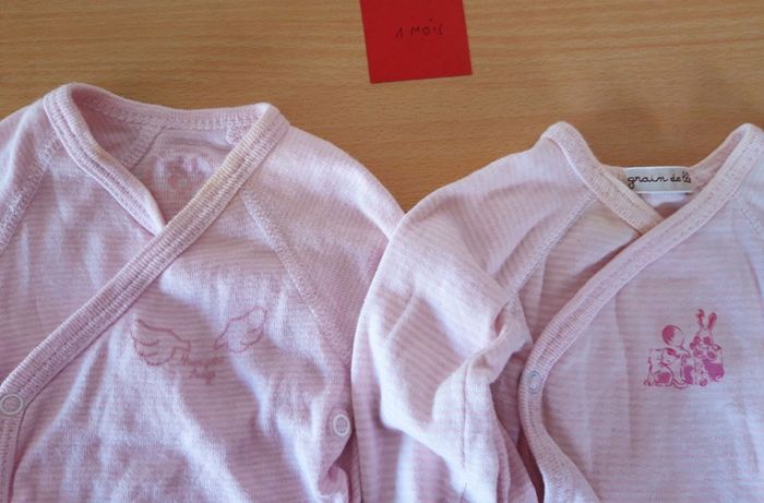 ils sont tachés au col mais détachable, vu à l'image Je vend d autres vêtements de 1 mois et de préma jusqu a 4 ans, articles de puericultures, équipement bébé, chaussures de 0 à 25, jouets, poupées...