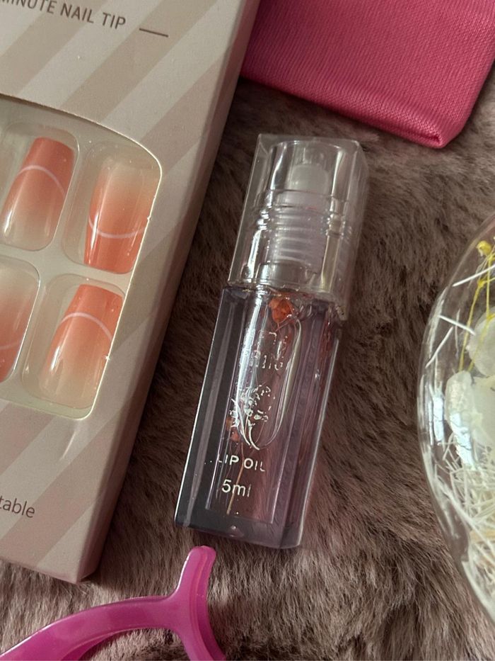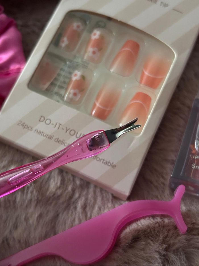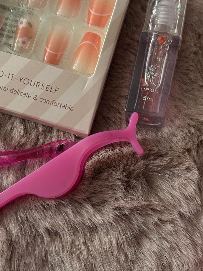 Ce lot comporte: Un disque démaquillant Un paquet de faux ongle Une fourchette à cuticule Une huile à lèvre Un bandeau Un chouchou en satin Une petite pince Une pince pour appliquer les faux cils