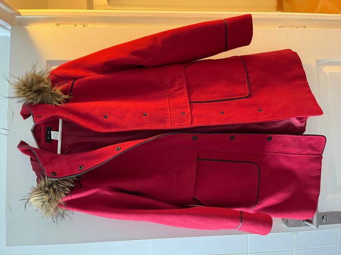Manteau rouge à capuche marque la redoute taille 40. Très bon état, taille correctement très confortable.