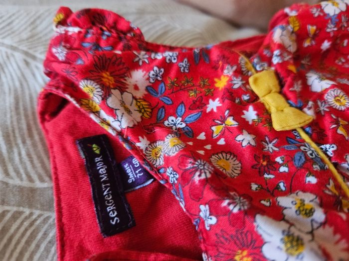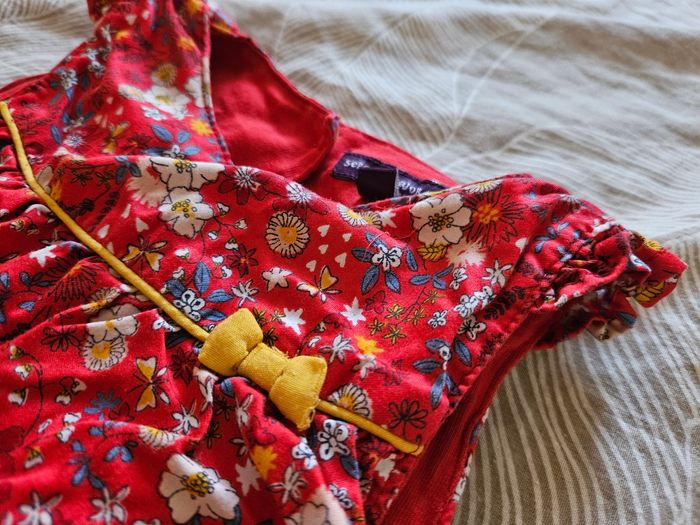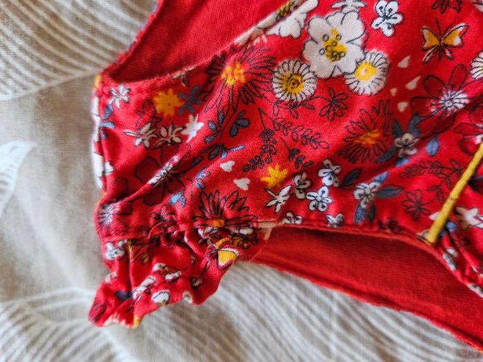 Style liberty, en 9 mois. Hyper confortable et jolie, a peine portée car erreur de taille pour la saison. Fermeture par pressions à l entre jambes.