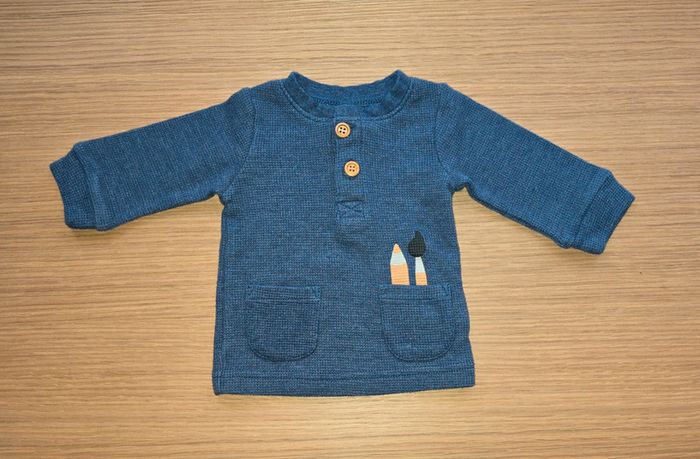 Tee-shirt polo nid d'abeille boutons en bois 3 mois