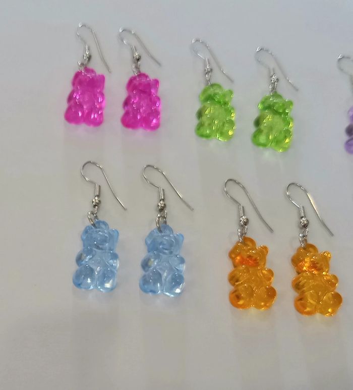 Ensemble de 8 jolies paires de boucles d'oreilles motif ours haribo.