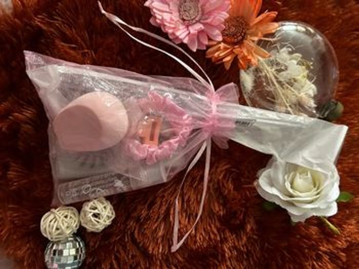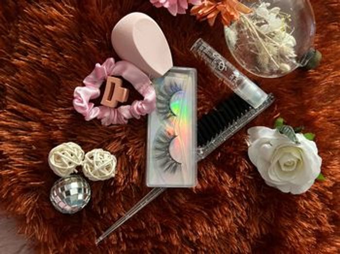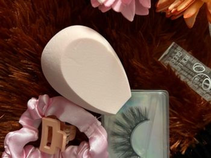 Ce lot contient: Une paire de faux cils Un Beauty blender Un gloss Un peigne plaquant Une petite pince Un chouchou en satin