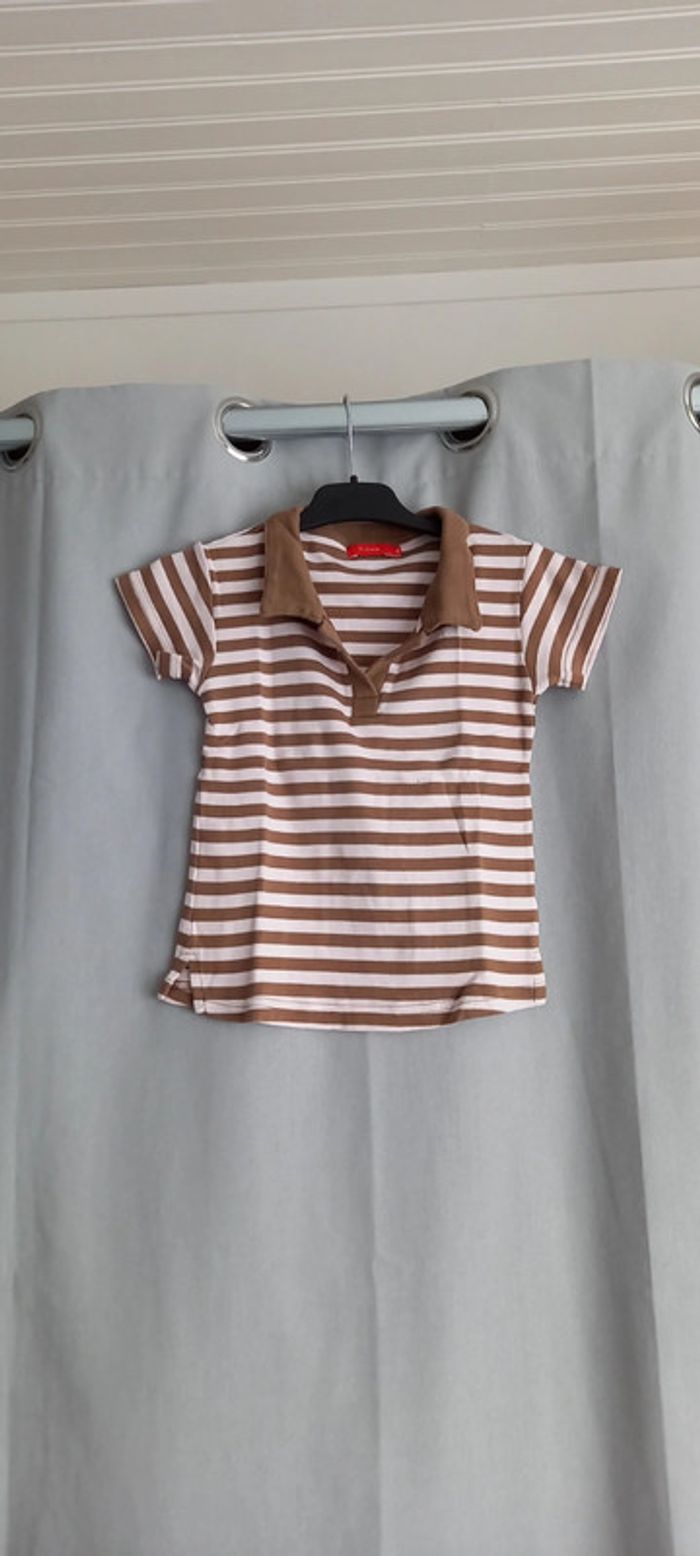 Polo 8 ans rayé blanc et marron tissaia - photo numéro 2