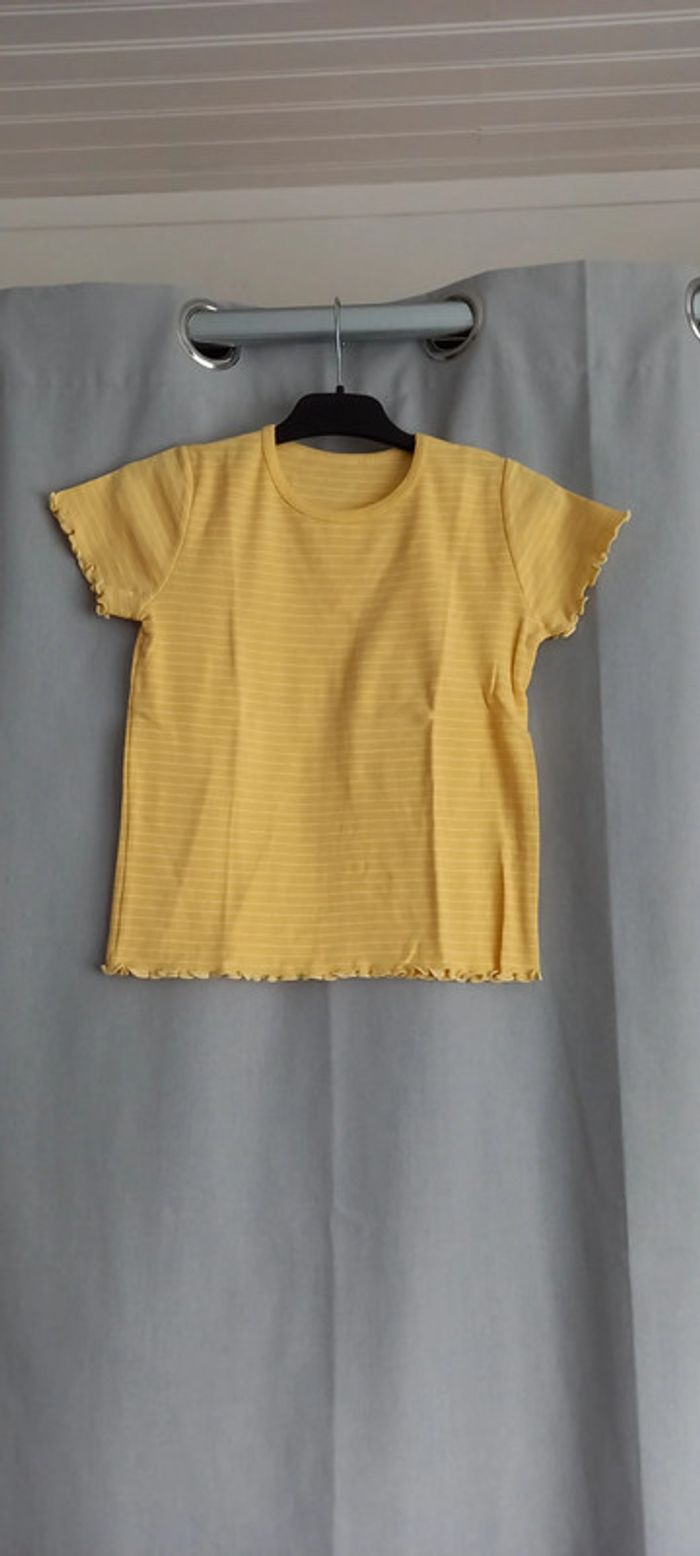 T-shirt rayé jaune et blanc 8 ans - photo numéro 1