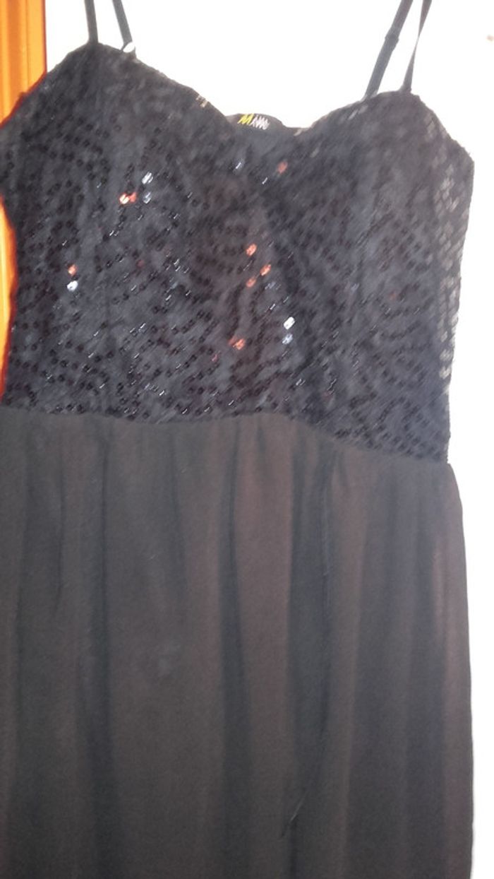 Robe de soirée de couleur noir avec strass sur le haut de la robe. En parfait état !