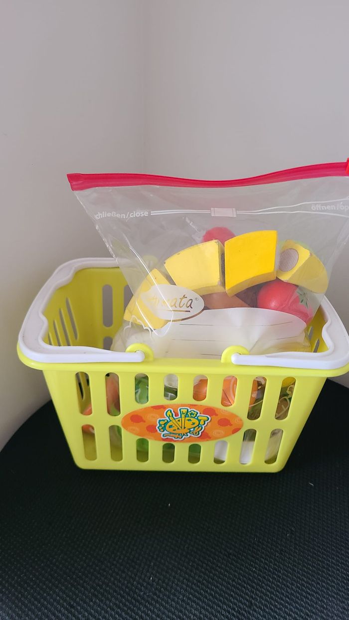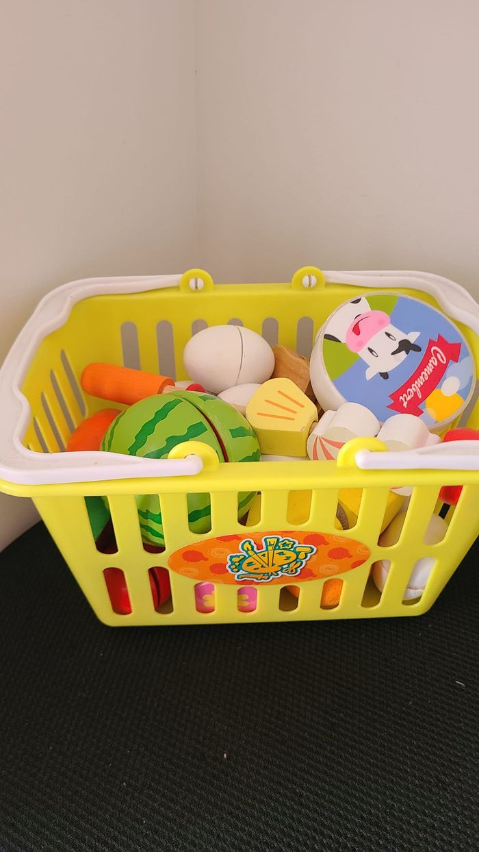 Fruits à découper en bois et panier et autres