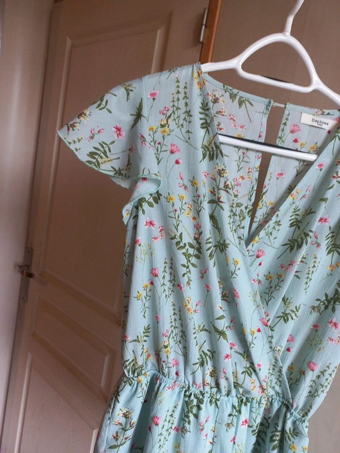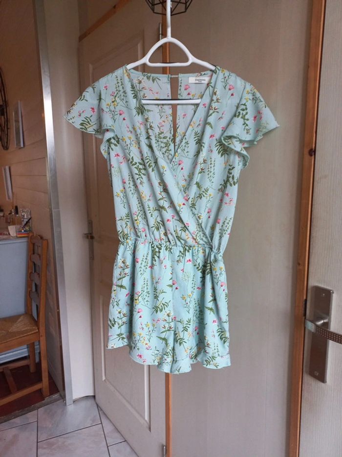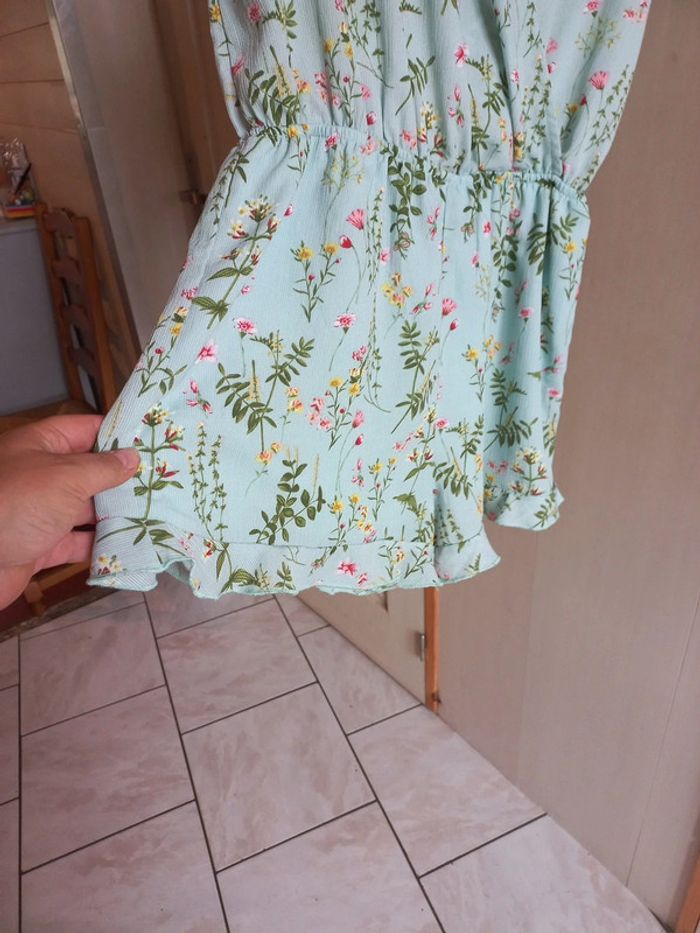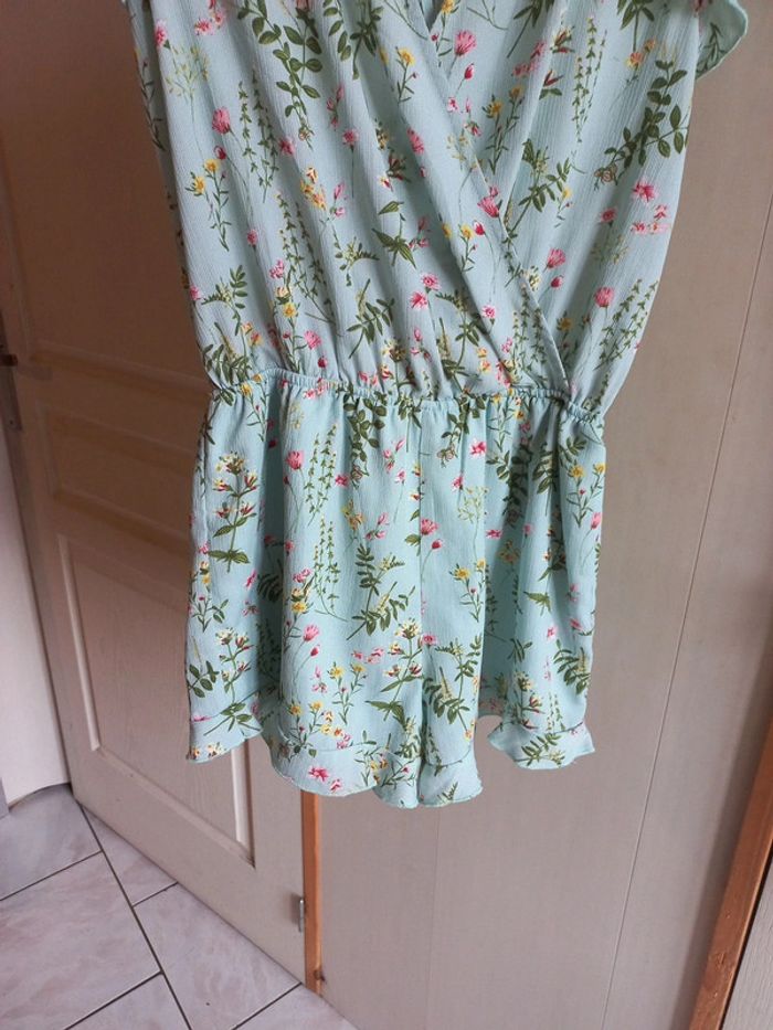 Combishort verte clair imprimée fleurs Taille S Fluide