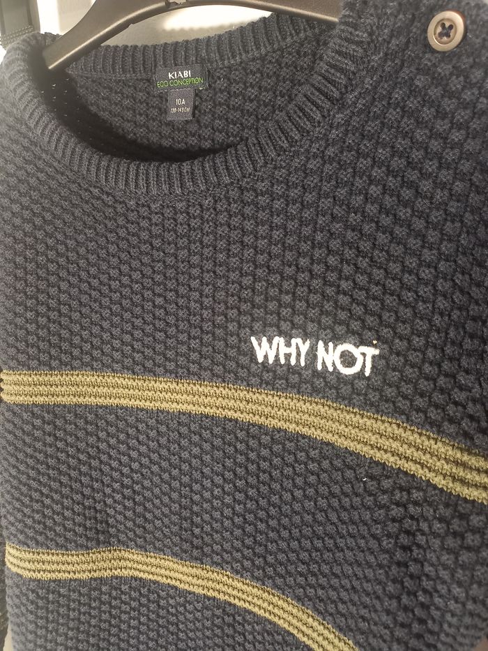 Je vend un pull pas trop chaud. En très bon état, acheté à kiabi en taille 10 ans. Très peu mis.