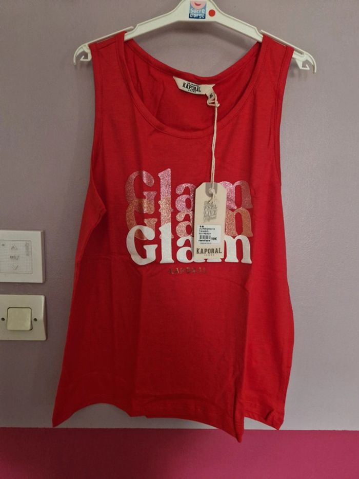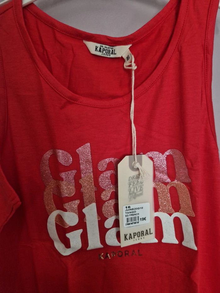 Débardeur neuf avec étiquettes, de marque Kaporal, taille 16 ans. Motif "Glam" avec paillettes. 51% viscose et 49% coton.