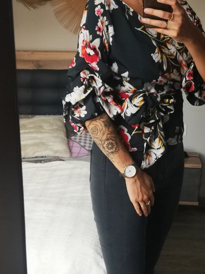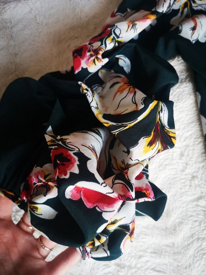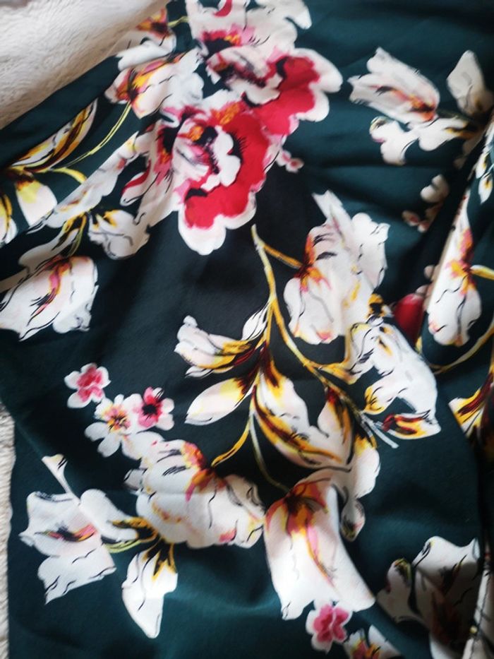 Très jolie bliuse cache coeur vert bouteille à fleur excellent état marqué 38 mais taille 36 #lilirosenfemme36