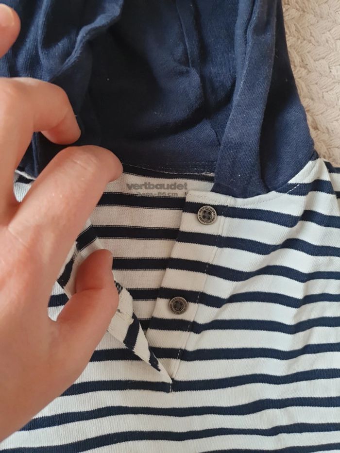 tee shirt manche longue avec capuche mariniére bleu marine et camel taille 2ans marque vertbaudet en très bon état dressing trié par taille , cliquez ici #adele2791_deuxansgarçon